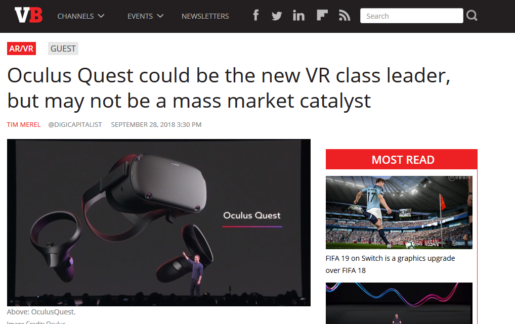 VentureBeat 则称赞其为新VR阶层的领导者;